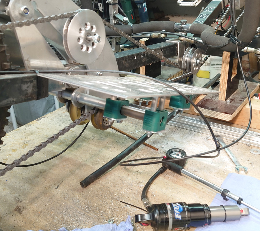 @jimmy Hast du schon einmal daran gedacht, die Stoßdämpfer vorne horizontal zu montieren? Dann liegen sie oben auf den Armen und du bekommst eine niedrigere Konstruktion.Schönes Projekt, sieht gut aus. Ich bin gespannt, wie er später fährt. Mein Trike ist nicht so niedrig, weil ich sonst eingeschränkt bin, wo ich fahren kann. Hier haben wir viele Schwellen und deshalb ist meiner höher vom Boden. Ich habe den Radstand etwas breiter gemacht, damit er in den Kurven stabiler ist.