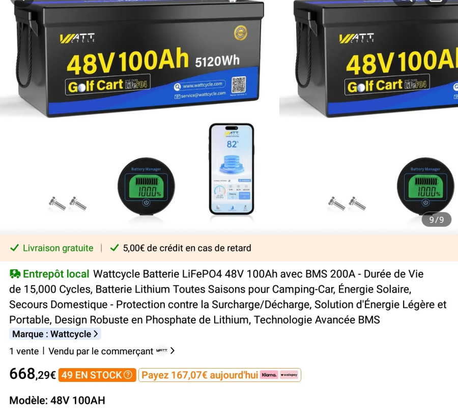 Mit solch einem Golf Kart LiFePo Akku mit 48V und 100Ah der ein 200A BMS hat über 5Kwh Kapazität hat und 40 KG wiegt , per Bluetooth kommunizieren kann und 670€ kostet , kannst Du locker Deine 4 Blei Akkus ersetzen.