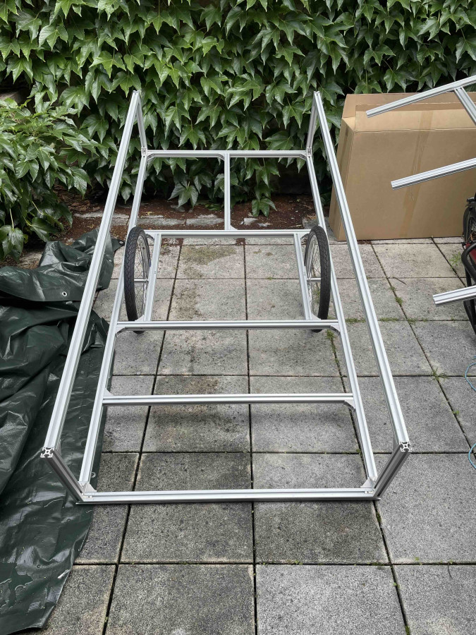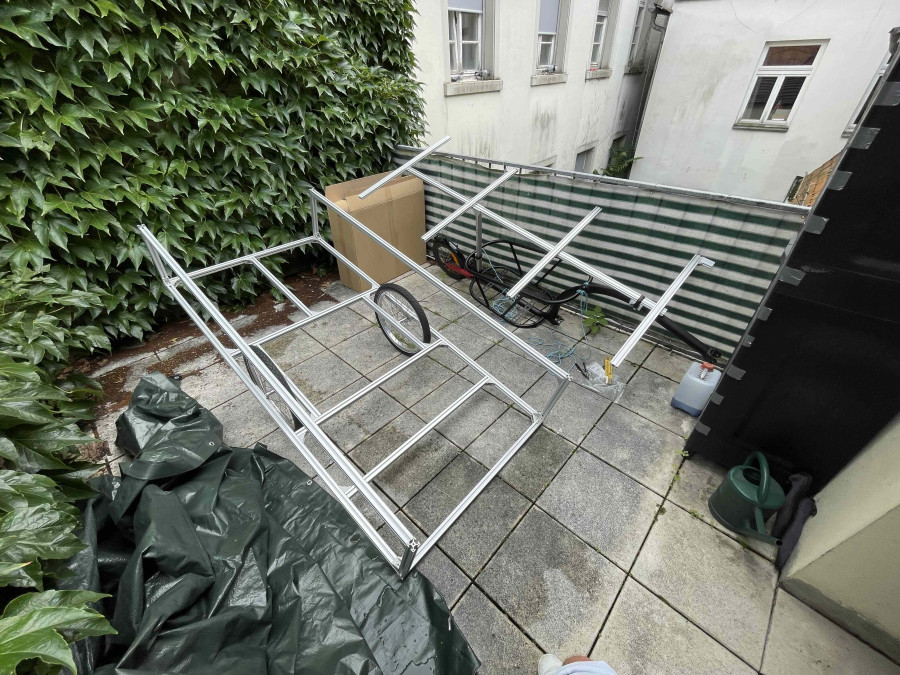 Die Weber Kupplung ist angekommen. Ich hab sie mal an meinem Fahrrad angebracht. Nach meinen Berechnungen wäre der Höhenunterschied zwischen Kupplung und Unterkante des Fahrradwohnwagens: 8 cm. Das hört sich für mich zu viel an. Ich hatte mir überlegt, die Deichsel vielleicht etwas anders zu gestalten und nicht an der Unterkante des Wagens anzubringen, sondern an der Oberkante der Systemprofile, auf der die Bodenplatte liegen wird. Auch nicht mittig, sondern auf der (in Fahrtrichtung) linken Seite. Quasi in der Verlängerung des linken Radkastens. Da wäre eh keine Liegefläche, sondern ein Gepäckfach. Dann hätte ich da nur noch 1,8 cm Höhenunterschied. Meint ihr, das könnte stabil genug sein? Was mir nicht gefällt, ist, dass ich dann eine Aussparung in der Bodenplatte machen müsste. Das wäre nicht cool für die Stabilität der Bodenplatte. Und ich müsste schauen, wie ich das ganze dann dicht bekomme… Die Konstruktion der Rückwand (Ich nenne sie mal Rückwand, auch wenn sie in Fahrtrichtung die vordere Wand ist) würde so auch etwas komplizierter werden…