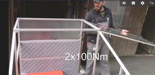 Jetzt mal genau nachgerechnet: Leichtestes Aluprofil von Alusteck wiegen bei 3 lfm 561 Gram. 0,54 m2 Polycarbonat-hohlkammer Platte bei 4,5 mm Stärke wiegen 456 Gram. Machen 1,17kg, Wie beim Danty gut genug geschätzt, aber bevor ich nachrechnete.